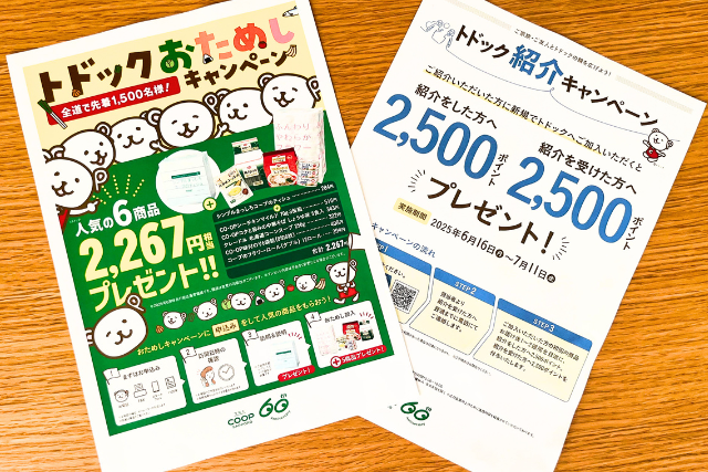 トドックでは、常時いくつかのキャンペーンや特典が用意されています。