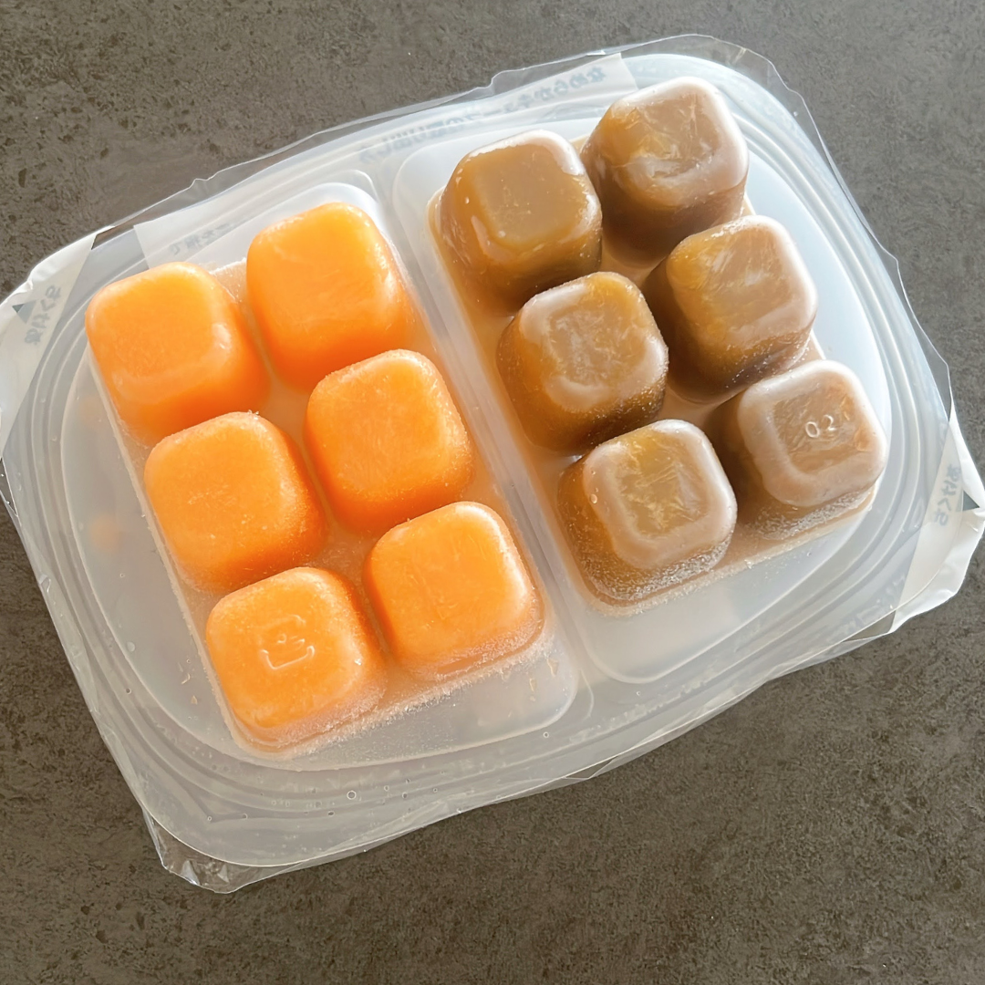 国産野菜入りの豆乳ホワイトソースをキューブ状に冷凍したもの。電子レンジ調理でご飯や野菜にかけたりめんと和えるなどアレンジできる。