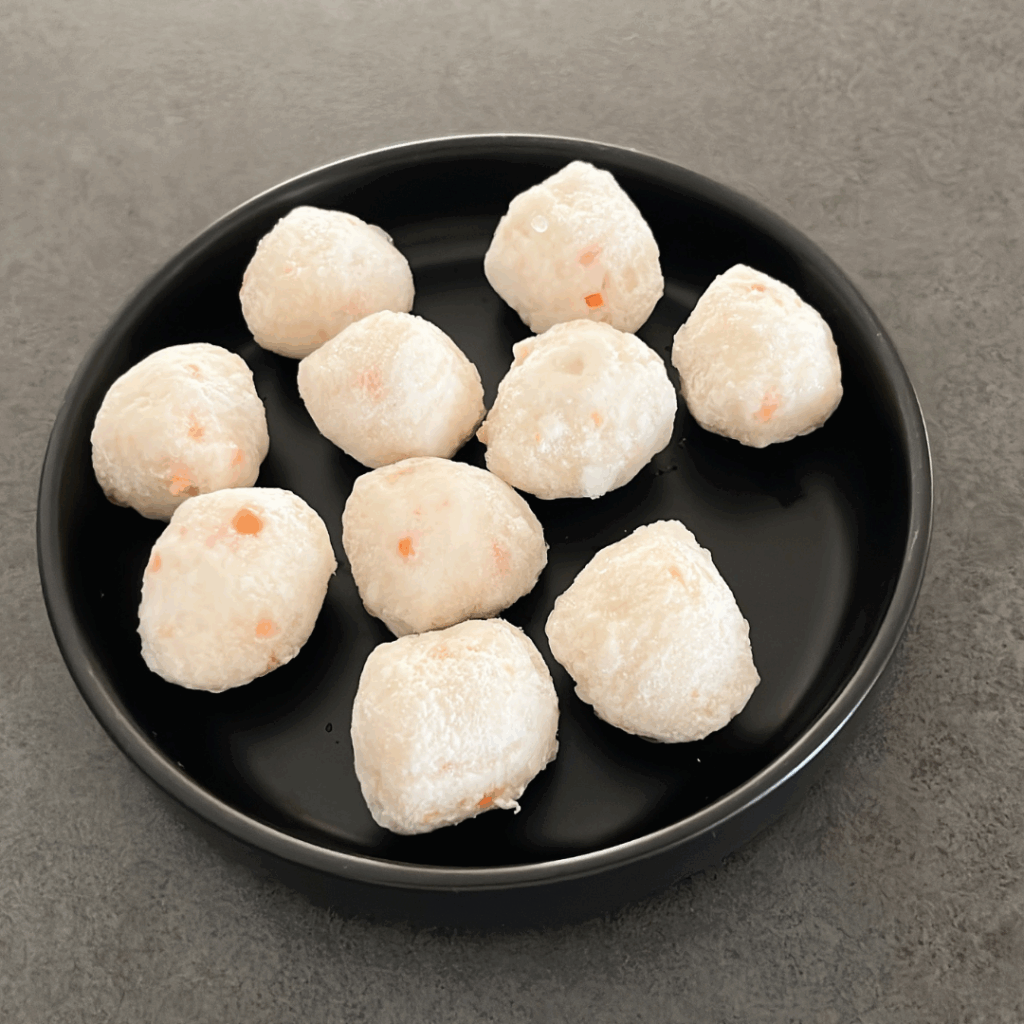 北海道産すけそうだらのすり身に国産たまねぎ・にんじんを入れ、つみれ状にして茹でて冷凍したもの。電子レンジまたはボイルで調理できる。